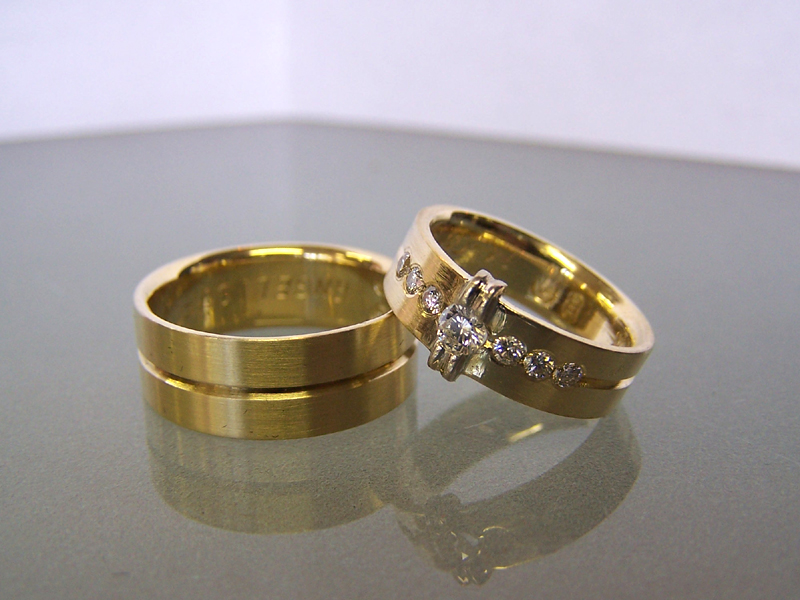 > titanium ring ingelegd met roségouden banden en witgouden ring met diamant