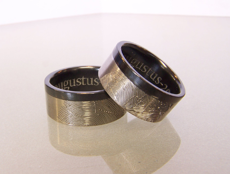 Titanium trouwringen ingelegd en geklonken met geelgoud en witgoud